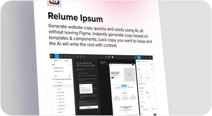 Relume Ipsum Generate website copy quickly and easily using AI, all without leaving Figma. Instantly generate copy based on templates & components. Lock copy you want to keep and the AI will write the rest with context.