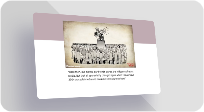 “Back then, our clients, our brands owned the influence of mass media. But that all appreciably changed again when I saw about 2004 as social media and ecommerce really took hold.”