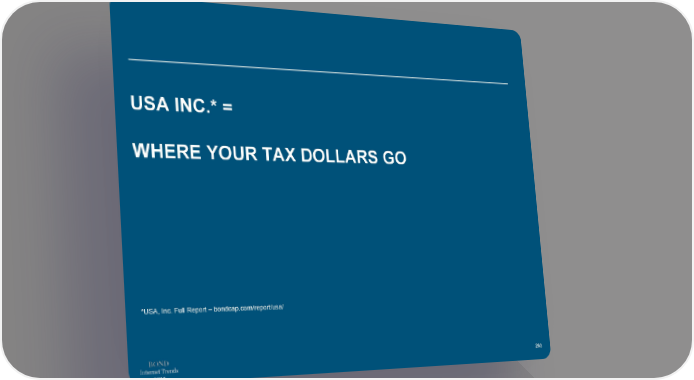 Internet Trends 2019 - Mary Meeker Page 109 Page 111USA INC.* = WHERE YOUR TAX DOLLARS GO *USA, Inc. Full Report – bondcap.com/report/usa/ Internet Trends 263 2019