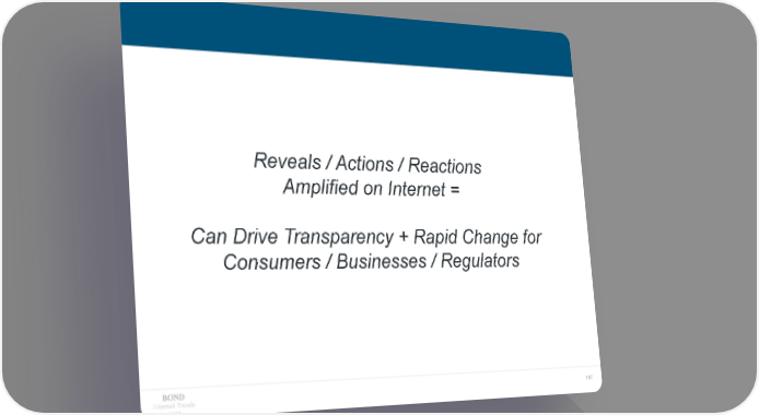 Reveals / Actions / Reactions Amplified on Internet = Can Drive Transparency + Rapid Change for Consumers / Businesses / Regulators Internet Trends 197 2019