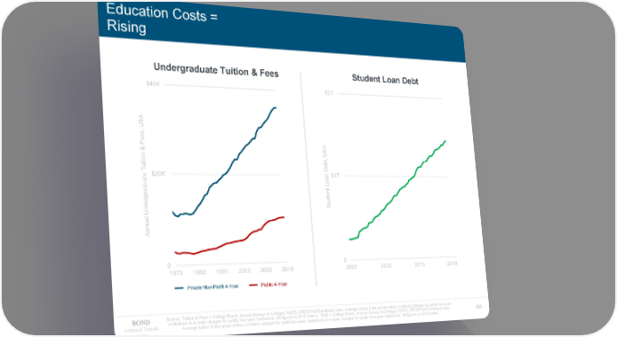 Education Costs = Rising Undergraduate Tuition & Fees Student Loan Debt $40K $2T A US , Fees A & US on t, ti ui T $20K Deb$1T te an ua Lo ad t ergr en tud Und S l ua nn A 0 0 1973 1982 1991 2000 2009 2018 2003 2008 2013 2018 Private Non-Profit 4-Year Public 4-Year Source: Tuition & Fees = College Board, Annual Survey of Colleges; NCES, IPEDS Fall Enrollment data. Average tuition & fee prices reflect in-district charges for public two-year institutions & in-state charges for public four-year institutions. All figures in 2018 dollars. Debt = College Board, Annual Survey of Colleges; NCES, IPEDS Fall Enrollment data. Internet Trends Average tuition & fee prices reflect in-district charges for public two-year institutions & in-state charges for public four-year institutions. All figures in 2018 dollars. 235 2019