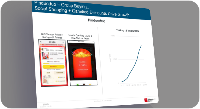 Pinduoduo = Group Buying… Social Shopping + Gamified Discounts Drive Growth Pinduoduo Trailing 12-Month GMV Get Cheaper Price by Friends Can Play Game & $100B Sharing with Friends Help Reduce Prices ) $B ( MV $50B G 0 Q1:17 Q3:17 Q1:18 Q3:18 Q1:19 Note: Assume FX 1USD=6.9RMB. Internet Trends 310 2019