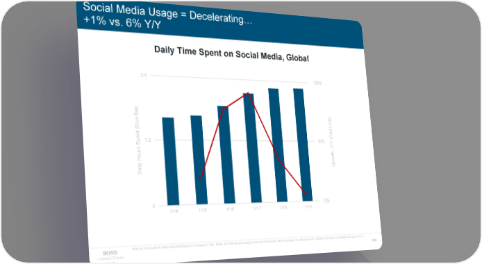 Social Media Usage = Decelerating… +1% vs. 6% Y/Y Daily Time Spent on Social Media, Global 2.4 16% ar) ) B ne ue l Li B ( ed nt R ( pe1.2 8% Y S / s Y r h, ou t H ow r y l G ai D 0 0% 1/14 1/15 1/16 1/17 1/18 1/19 Source: Hootsuite & WeAreSocial Digital 2019 report (1/19). Note: 2019 Estimate owing to the fact that users were surveyed in January 2019, before they have completed the year 2019. Internet Trends 164 2019