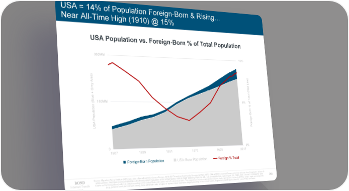 USA = 14% of Population Foreign-Born & Rising… Near All-Time High (1910) @ 15% USA Population vs. Foreign-Born % of Total Population 360MM 16% ) ) ea ne r Li A ey r Red G ( + l ota ue T l B 180MM 8% ( on ati orn % of ul B op - P gn A orei US F 0 0% 1907 1929 1951 1973 1995 2017 Foreign-Born Population USA-Born Population Foreign % Total Source: Migration Policy Institute (MPI) tabulation of data from U.S. Census Bureau, 2010-2017 American Community Surveys (ACS) & 1970, 1990 & 2000 Decennial Census. All other data are from Campbell J. Gibson & Emily Lennon, "Historical Census Statistics on the Foreign-Born Population of the United States: 1850 to 1990" (Working Paper no. 29., U.S. Census Bureau, Washington, DC, 1999). Note: The term "immigrants" (also Internet Trends known as the foreign born) refers to people residing in the United States who were not U.S. citizens at birth. This population includes naturalized citizens, lawful permanent residents (LPRs), certain legal nonimmigrants 262 2019 (e.g., persons on student or work visas), those admitted under refugee or asylee status & persons illegally residing in the United States. Population growth figures from St. Louis FRED database.