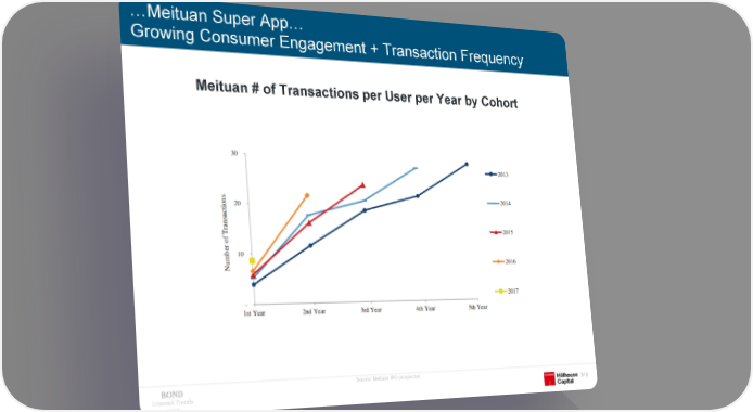 …MeituanSuper App… Growing Consumer Engagement + Transaction Frequency Meituan# of Transactions per User per Year by Cohort Source: Meituan IPO prospectus Internet Trends 319 2019