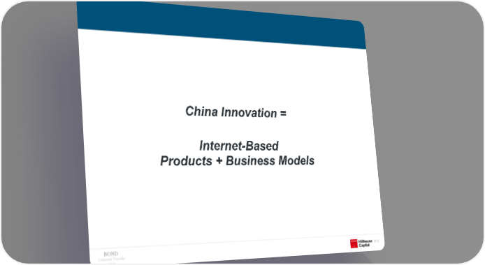 China Innovation = Internet-Based Products + Business Models Internet Trends 313 2019