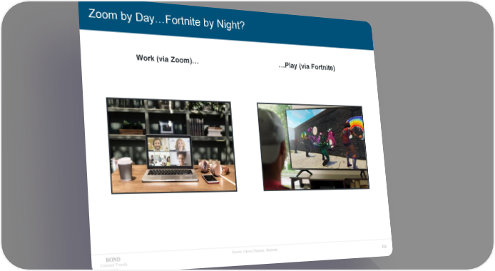 Internet Trends 2019 - Mary Meeker Page 78 Page 80Zoom by Day…Fortnite by Night? Work (via Zoom)… …Play (via Fortnite) Source: Canva (Pixabay). Nintendo. Internet Trends 232 2019