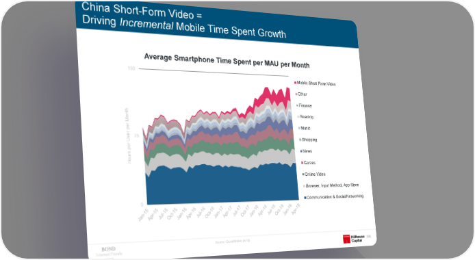 China Short-Form Video = Driving Incremental Mobile Time Spent Growth Average Smartphone Time Spent per MAU per Month 150 Mobile Short Form Video Other Finance th Reading n o M r Music e p r e 75 Shopping Us r e p News s r u Ho Games Online Video Browser, Input Method, App Store 0 Communication & Social Networking Source: QuestMobile (4/19) Internet Trends 306 2019