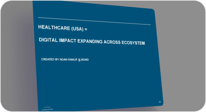 HEALTHCARE (USA) = DIGITAL IMPACT EXPANDING ACROSS ECOSYSTEM CREATED BY NOAH KNAUF @ BOND Internet Trends 269 2019