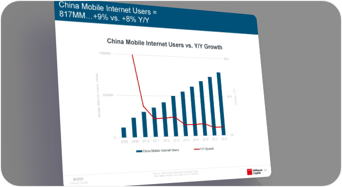 China Mobile Internet Users = 817MM…+9% vs. +8% Y/Y China Mobile Internet Users vs. Y/Y Growth 1000MM 80% na , Chi ers /Y Y Us 500MM 40% th, ow ernet r Int G e l bi Mo 0 0% 2008 2009 2010 2011 2012 2013 2014 2015 2016 2017 2018 China Mobile Internet Users Y/Y Growth Source: China Internet Network Information Center Note: Mobile Internet User Data is as of Year-End. Internet Trends 303 2019