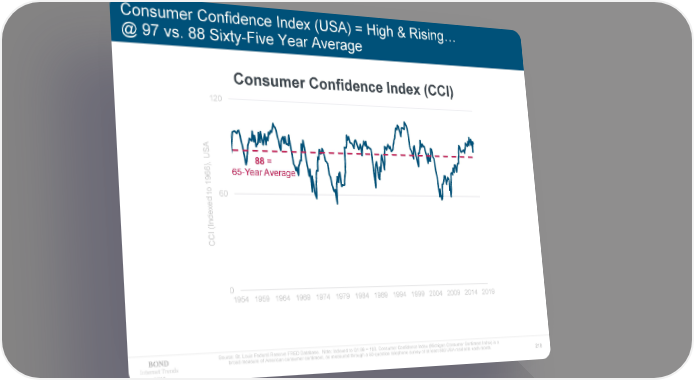 Consumer Confidence Index (USA) = High & Rising… @ 97 vs. 88 Sixty-Five Year Average Consumer Confidence Index (CCI) 120 USA 88= ), 6 65-Year Average 6 9 1 to60 d e x e d (In I CC 0 1954 1959 1964 1969 1974 1979 1984 1989 1994 1999 2004 2009 2014 2019 Source: St. Louis Federal Reserve FRED Database. Note: Indexed to Q1:66 = 100. Consumer Confidence Index (Michigan Consumer Sentiment Index) is a broad measure of American consumer sentiment, as measured through a 50-question telephone survey of at least 500 USA residents each month. Internet Trends 218 2019