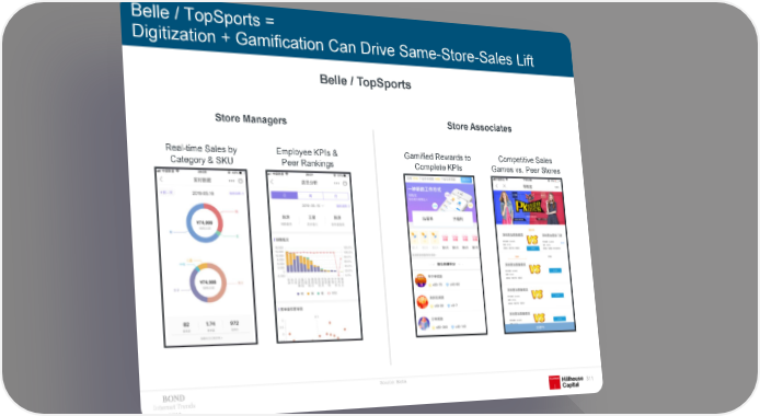 Belle / TopSports = Digitization + Gamification Can Drive Same-Store-Sales Lift Belle / TopSports Store Managers Store Associates Real-time Sales by Employee KPIs & Gamified Rewards to Competitive Sales Category & SKU Peer Rankings Complete KPIs Games vs. Peer Stores Source: Belle. Internet Trends 311 2019