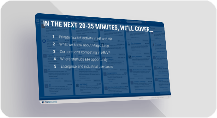 IN THE NEXT 20-25 MINUTES, WE’LL COVER… 1 Private market activity in AR and VR 2 What we know about Magic Leap 3 Corporations competing in AR/VR 4 Where startups see opportunity 5 Enterprise and industrial use cases #ARVR www.cbinsights.com 7