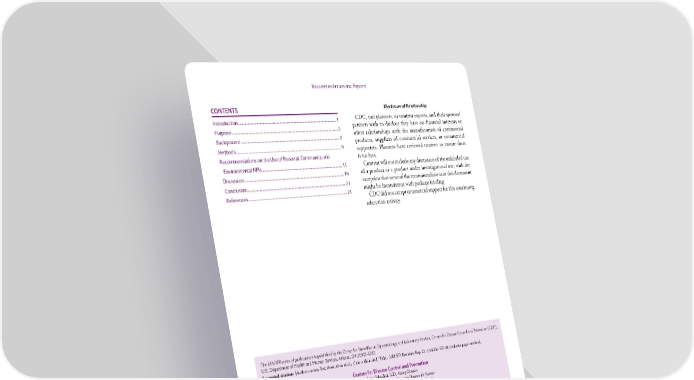 Recommendations and Reports CONTENTS Disclosure of Relationship Introduction ............................................................................................................1 CDC, our planners, or content experts, and their spouses/ Purpose .....................................................................................................................2 partners wish to disclose they have no financial interests or other relationships with the manufacturers of commercial Background .............................................................................................................2 products, suppliers of commercial services, or commercial Methods ....................................................................................................................9 supporters. Planners have reviewed content to ensure there Recommendations on the Use of Personal, Community, and is no bias. Environmental NPIs ......................................................................................... 11 Content will not include any discussion of the unlabeled use Discussion ............................................................................................................. 19 of a product or a product under investigational use, with the Conclusion ............................................................................................................ 21 exception that some of the recommendations in this document References ............................................................................................................. 21 might be inconsistent with package labeling CDC did not accept commercial support for this continuing education activity. The MMWR series of publications is published by the Center for Surveillance, Epidemiology, and Laboratory Services, Centers for Disease Control and Prevention (CDC), U.S. Department of Health and Human Services, Atlanta, GA 30329-4027. Suggested citation: [Author names; first three, then et al., if more than six.] [Title]. MMWR Recomm Rep 2017;66(No. RR-#):[inclusive page numbers]. Centers for Disease Control and Prevention Anne Schuchat, MD, Acting Director Patricia M. Griffin, MD, Acting Associate Director for Science Joanne Cono, MD, ScM, Director, Office of Science Quality Chesley L. Richards, MD, MPH, Deputy Director for Public Health Scientific Services Michael F. Iademarco, MD, MPH, Director, Center for Surveillance, Epidemiology, and Laboratory Services MMWR Editorial and Production Staff (Serials) Sonja A. Rasmussen, MD, MS, Editor-in-Chief Martha F. Boyd, Lead Visual Information Specialist Charlotte K. Kent, PhD, MPH, Executive Editor Maureen A. Leahy, Julia C. Martinroe, Christine G. Casey, MD, Editor Stephen R. Spriggs, Tong Yang, Teresa F. Rutledge, Managing Editor Visual Information Specialists David C. Johnson, Lead Technical Writer-Editor Quang M. Doan, MBA, Phyllis H. King, Terraye M. Starr, Moua Yang, Catherine B. Lansdowne, MS, Project Editor Information Technology Specialists MMWR Editorial Board Timothy F. Jones, MD, Chairman William E. Halperin, MD, DrPH, MPH Jeff Niederdeppe, PhD Matthew L. Boulton, MD, MPH King K. Holmes, MD, PhD Patricia Quinlisk, MD, MPH Virginia A. Caine, MD Robin Ikeda, MD, MPH Patrick L. Remington, MD, MPH Katherine Lyon Daniel, PhD Rima F. Khabbaz, MD Carlos Roig, MS, MA Jonathan E. Fielding, MD, MPH, MBA Phyllis Meadows, PhD, MSN, RN William L. Roper, MD, MPH David W. Fleming, MD Jewel Mullen, MD, MPH, MPA William Schaffner, MD