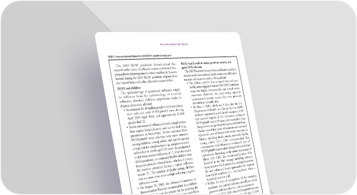 Recommendations and Reports BOX 1. Lessons learned from the 2009 H1N1 pandemic response The 2009 H1N1 pandemic demonstrated the Public health tools to assess pandemic severity and unpredictable nature of influenza viruses and showed that guide NPI selection prepandemic planning must be broad and flexible. Lessons The 2007 Pandemic Severity Index had limited usefulness learned during the 2009 H1N1 pandemic response from because attack rates and case-fatality ratios were difficult to the United States and other affected countries follow. measure and imprecise early in the pandemic. H1N1 and children • The earliest available data on attack rates and case- The epidemiology of pandemic influenza might fatality ratios suggested that the 2009 H1N1 pandemic be different from the epidemiology of seasonal virus was highly transmissible and caused severe influenza; therefore, different populations might be outcomes. However, the cases being reported disproportionately affected. overestimated severity because they were primarily • An estimated 43–89 million people in the United States derived from mortality data. were infected with H1N1pdm09 virus during • By May 1, 2009, which was 5 days after the U.S. April 2009–April 2010, and approximately 12,000 Department of Health and Human Services (HHS) people died (3). declared a nationwide public health emergency, CDC • Severe outcomes of influenza include complications had received reports of 141 laboratory-confirmed that require hospitalization and can be fatal (e.g., H1N1pdm09 cases in 19 states, with one death in Texas pneumonia or bronchitis). Severe outcomes from (https://www.cdc.gov/h1n1flu/updates/050109.htm). H1N1pdm09 virus infection were most common On the basis of this initial information and continued among children, young adults, and specific groups reports of cases of disease with severe outcomes in at high risk for complications (e.g., pregnant women) Mexico, including deaths among previously healthy rather than in adults aged ≥65 years, the group most young adults (11), CDC recommended that at risk from seasonal influenza (4–7). Over the course communities with laboratory-confirmed cases of of the pandemic, an estimated 86,000 children were H1N1pdm09 virus consider closing child care facilities hospitalized in the United States, which is 2–3 times and schools, depending on the extent and severity of the number admitted during a typical influenza illness (12). CDC also recommended other NPIs season (5). The number of deaths among children described in the 2007 strategy, including voluntary also was more than twice as high as during a regular home isolation for ill persons (i.e., staying home when influenza season. ill) and voluntary home quarantine for exposed • On August 28, 2009, the Advisory Committee on household members (i.e., staying home when a Immunization Practices recommended that children household member is ill). be placed higher on the priority list for receiving the • Within 12 days of recognition of the emerging monovalent H1N1 vaccine, which became available in pandemic, the national influenza surveillance system October 2009 (8). generated sufficient data for a refined assessment. • Children at risk for severe outcomes from the – From April 23, 2009, when H1N1pdm09 virus was H1N1pdm09 virus (and from any influenza virus) detected in California (13), through May 5, 2009, included those with underlying health conditions such CDC received reports of 403 confirmed cases of as asthma, diabetes, obesity, or heart, lung, or H1N1pdm09 virus in 38 states. The low rates of neurologic diseases. Approximately 60% of hospitalized hospitalizations and deaths, as well as reported attack children had one or more of these conditions, rates similar to those for seasonal influenza, compared with 80% of hospitalized adults (5). Infants suggested that the majority of U.S. cases were less born to mothers infected with the H1N1pdm09 virus severe than those reported from Mexico. also might have been at risk, as suggested by U.S. and – CDC issued new nonpharmaceutical intervention Canadian studies which found that infants whose (NPI) guidance on May 5, 2009 (14), recommending mothers received the H1N1 vaccine were less likely that although ill students and teachers should stay to be small for their gestational age or delivered home, schools did not need to close. The guidance preterm (9,10). acknowledged that public health authorities in certain jurisdictions might still decide to close 4 MMWR / April 21, 2017 / Vol. 66 / No. 1 US Department of Health and Human Services/Centers for Disease Control and Prevention