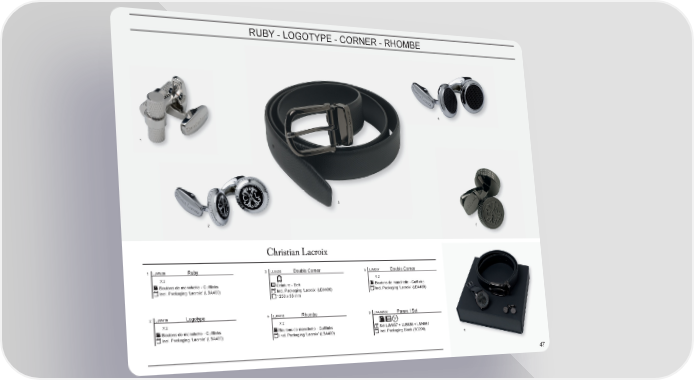 RUBY - LOGOTYPE - CORNER - RHOMBE 4 1 3 2 5 1 LJM536 Ruby 3 LLB536 Double Corner 5 LJM537 Double Corner X 2 X 2 Boutons de manchette - Cufflinks Ceinture - Belt Boutons de manchette - Cufflinks Incl. Packaging ‘Lacroix’ (LBA400) Incl. Packaging ‘Lacroix’ (LBX400) Incl. Packaging ‘Lacroix’ (LBA400) 1250 x 35 mm 2 LJM416 Logotype 4 LJM418 Rhombe 6 LPAJM537 Parure / Set X 2 X 2 Boutons de manchette - Cufflinks Boutons de manchette - Cufflinks Set LJM537 + LLB536 + LMN561 Incl. Packaging ‘Lacroix’ (LBA400) Incl. Packaging ‘Lacroix’ (LBA400) Incl. Packaging Black (BG299) 6 4747