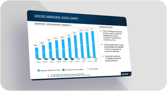 GROSS MARGINS (NON-GAAP) QUARTERLY GROSS MARGIN TRENDS(1)(2) CONSIDERATIONS 71% 73% 71% ► FQ2’18 Professional Services 69% & Other margins weighed by 65% headwinds as revenue 60% recognition transitions from 64% customer go-lives 65% 64% 81% ► Professional Services margins 62% 82% 80% 80% 81% should stabilize with transition 80% 80% 78% to revenue recognition as 77% services are delivered 76% 10% ► Continued investments (68%) (104%) (89%) (59%) (53%) (60%) (5%) (5%) (9%) in Professional Services FQ1'16 FQ2'16 FQ3'16 FQ4'16 FQ1'17 FQ2'17 FQ3'17 FQ4'17 FQ1'18 FQ2'18 partner ecosystem Subscription Services Gross Margin Prof. Services & Other Gross Margin Total Gross Margin (1) For a reconciliation of GAAP to Non-GAAP metrics, refer to the Appendix (2) Bar chart represents gross profit dollar amounts while data labels refer to gross margins ©2017 Coupa Software, Inc. – Confidential – All Rights Reserved 36