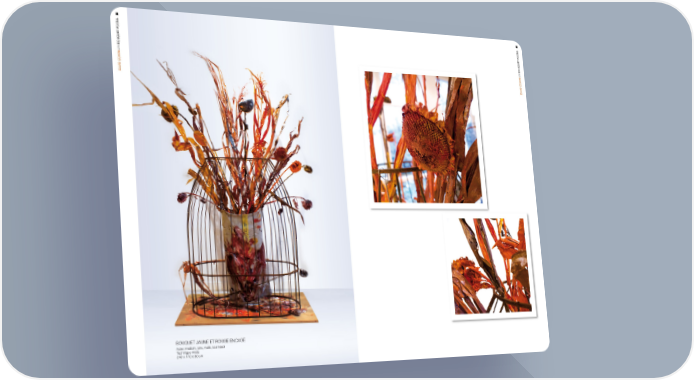 Bouquet Postal Page 8 Page 10DAVID COHEN ///// BOUQUET POSTAL DAVID COHEN ///// BOUQUET POSTAL BOUQUET JAUNE ET ROUGE ENCAGÉ Acier, medum, jute, maïs, tournesol Technique mixte 240 x 170 x 90 cm