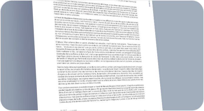 DAVID COHEN ///// CONFÉRENCE “LE DOUBLE” filiation, mais cela dépasse le strict lien père-fils ou mère-fille évoqué précédemment. En effet, dans ce cas, l'image du double vient aussi témoigner d'une quête de Dieu, d'une quête de spiritualité. L'Autre devient une abstraction à laquelle on se réfère en le vénérant (ou en le refusant sur le même mode dans les philosophies volontairement athéistes). Dans le domaine de l'art, je ne prendrai que trois exemples qui ont à mon sens tous une profonde dimension poétique, quelle que soit la force et l'intensité du travail de ces artistes qui expriment leur profond sentiment de révolte. Les deux premiers sont des sculpteurs, Frans Krajcberg et Magdalena Abakanowicz, le troisième est poète, François Villon. L'œuvre de Krajcberg (qui au passage a vécu avenue du Maine pendant près de 20 ans dans les années 60 avec Guadagnucci) souvent qualifiée par certains de révolte écologique, doit être à mon sens entendue dans toute sa complexité narrative, poétique, biographique et surtout spirituelle. Il est certain que d'un point de vue narratif, son travail est un cri de révolte contre le pouvoir de l'homme et du feu. Il s’érige contre la maltraitance, qui se déroule sous ses yeux, et que l'homme fait subir à la forêt amazonienne. En récupérant racines, branches, troncs entiers calcinés après les défrichages, en les utilisant dans ses œuvres sculpturales et les positionnant sur un mode totémique, outre la valeur esthétique et poétique de ces scupltures-installations, Krajcberg rend compte aussi de sa propre histoire et de sa quête de spiritualité ou encore de communion avec les hommes. En effet, comment ne pas faire lien avec son expérience de la Shoah, lui qui dans l'après guerre fuit l'Europe pour se réfugier au Brésil qui deviendra sa terre d'accueil, pas le Brésil des mégapoles mais le Brésil de la nature, de la forêt sauvage, des grands espaces où il aime méditer, où il installera son atelier, où il cherchera ses pigments et où il finira par construire sa maison dans un arbre centenaire. Le travail de Magdalena Abakanowicz se situe dans un registre un peu différent et on peut dire que le module élémentaire de son art et à la fois sa mesure, c'est l'homme lui-même. L'homme du point de vue de sa condition, du point de vue de sa position dans le monde contemporain, mais également du point de vue de ses égarements dans l'excès, de son anonymat dans les foules, de son ressenti nostalgique de l'enfance. Le travail que je veux évoquer ici ? Ceux sont les installations de foules le plus souvent en bronze, mais également en bois, pierre, beaucoup plus rarement en céramique. Par exemple l'installation de la foule de dos évidés et assis dans le musée de la ville d'Hiroshima. Cette œuvre vient rappeler les milliers de morts et même la ville entière que le bombardement atomique détruisit pendant la deuxième guerre mondiale. Si le monument au mort d'Hiroshima s'incarne dans le seul bâtiment qui ait survécu à la bombe, pour beaucoup d'habitants, l'œuvre d'Abakanowicz a la force des œuvres qui font mémoire, non pas une mémoire architecturale, mais une mémoire incarnée dans le souvenir des survivants et dans la rémanence des âmes perdues. D'ailleurs, Villon enfermé dans un cachot, attendant son exécution, n’eut-il pas les mots suivants : "frères humains, qui après nous vivez, n'ayez les cœurs contre nous endurcis, car si pitié de nous pauvres avez, Dieu en aura plus tôt de vous mercis... "et encore un peu plus loin" puis ça, puis là, comme le vent varie, à son plaisir sans cesser nous charrie, plus becquetés d'oiseaux que dés à coudre, ne soyez donc de notre confrérie ; mais priez Dieu que tous nous veuille absoudre !". Cette méditation à Dieu, cet appel à la figure de l'Autre comme profondément humaine car partageant d'inéluctables vicissitudes de la souffrance et de la mort, c'est ce que questionnent tous ces artistes et que l'on retrouve aussi dans le magnifique Jérémie pleurant la destruction du temple de Rembrand. En effet, dans cette œuvre tardive, on peut se demander si l'allégorie que Rembrandt propose de la vision de Jérémie prédisant la destruction du Temple de Jérusalem, n'est pas également une allégorie sur sa propre condition, sur son âge avancé et donc sa mort prochaine, car beaucoup voient dans son Jérémie son propre double. Dans le champ de la psychopathologie, un syndrome vient confirmer combien cette image du double de soi vient convoquer le rapport à Dieu, les concepts d'immortalité et de damnation : le syndrome de Cotard. Il s'agit d'un délire méta-mélancolique survenant le plus souvent chez des hommes ou des femmes profondément déprimés. Il associe des idées de négation d'organe ou de concept comme l'existence même, de damnation, d'immortalité et/ou d'énormité. Ainsi, une patiente qui s'avérait être la seule survivante de sa famille toute décédée pendant la Shoah, s'accusait-elle de tous les maux pendant ses délires mélancoliques: ses organes étaient bouchés, elle ne pouvait plus déféquer, tout pourrissait à l'intérieur; mais ses urines envahissaient le monde, empoisonnaient tous les enfants de la terre, faisant d'elle le plus grand criminel nazi, damnée qu'elle était d'avoir survécu et d'être immortelle. Pour conclure ces propos, je souhaite évoquer un travail de Manuela Morgaine intitulé Icelectric. Il s'agit d'une performance pendant laquelle est projeté sur un bloc de glace un film qui raconte l'électricité à travers tout ce qu'elle incarne de puissance divine d'une part et maléfique d'autre part, ou encore de chaleur et de vie mais aussi de mort et d'effroi; enfin, ce qu'elle véhicule en terme de guérison lorsque par exemple on l'utilise pour guérir des syndromes de Cotard pendant des séances d'électrochocs, mais aussi de souffrance lorsqu'on l'utilise pour torturer et fa