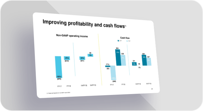 (1) Improving profitability and cash flows Non-GAAP operatingincome Cashflow OCF FCF $55 $9 11% $36 $38 3% 12% $27 (2%) (5%) 7% ($12) ($11) $11 8% (1%) 5% $0 ($5) 0% (18%) ($70) (13%) ($48) FY17 FY18 1HFY18 1HFY19 FY17 FY18 1HFY18 1HFY19 (1) Please see Appendix for non-GAAP reconciliation. 31