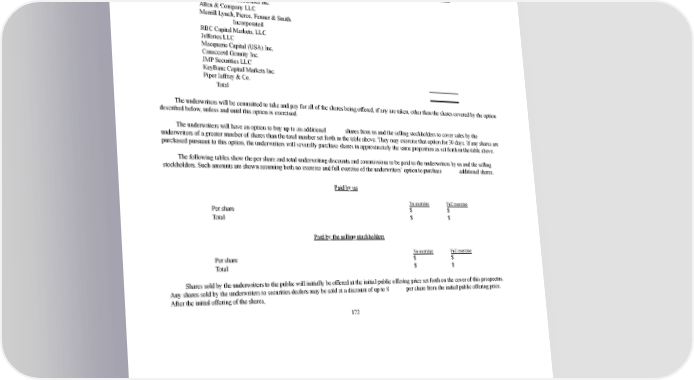 2/24/2018 S-1 Table of Contents UNDERWRITING (CONFLICTS OF INTEREST) We, the selling stockholders and the underwriters named below will enter into an underwriting agreement with respect to the shares being offered. Subject to certain conditions, each underwriter will severally agree to purchase the number of shares indicated in the following table. Goldman Sachs & Co. LLC and J.P. Morgan Securities LLC are the representatives of the underwriters. Underwriters Number of shares Goldman Sachs & Co. LLC J.P. Morgan Securities LLC Deutsche Bank Securities Inc. Allen & Company LLC Merrill Lynch, Pierce, Fenner & Smith Incorporated RBC Capital Markets, LLC Jefferies LLC Macquarie Capital (USA) Inc. Canaccord Genuity Inc. JMP Securities LLC KeyBanc Capital Markets Inc. Piper Jaffray & Co. Total The underwriters will be committed to take and pay for all of the shares being offered, if any are taken, other than the shares covered by the option described below, unless and until this option is exercised. The underwriters will have an option to buy up to an additional shares from us and the selling stockholders to cover sales by the underwriters of a greater number of shares than the total number set forth in the table above. They may exercise that option for 30 days. If any shares are purchased pursuant to this option, the underwriters will severally purchase shares in approximately the same proportion as set forth in the table above. The following tables show the per share and total underwriting discounts and commissions to be paid to the underwriters by us and the selling stockholders. Such amounts are shown assuming both no exercise and full exercise of the underwriters’ option to purchase additional shares. Paid by us No exercise Full exercise Per share $ $ Total $ $ Paid by the selling stockholders No exercise Full exercise Per share $ $ Total $ $ Shares sold by the underwriters to the public will initially be offered at the initial public offering price set forth on the cover of this prospectus. Any shares sold by the underwriters to securities dealers may be sold at a discount of up to $ per share from the initial public offering price. After the initial offering of the shares, 172 https://www.sec.gov/Archives/edgar/data/1467623/000119312518055809/d451946ds1.htm 180/235