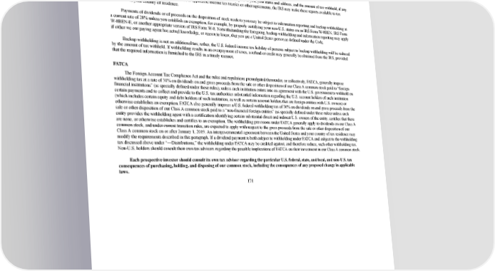 2/24/2018 S-1 Table of Contents Federal Estate Tax Our Class A common stock beneficially owned by an individual who is not a citizen or resident of the United States (as defined for U.S. federal estate tax purposes) at the time of their death will generally be includable in the decedent’s gross estate for U.S. federal estate tax purposes, unless an applicable estate tax treaty provides otherwise. Backup Withholding and Information Reporting Generally, we must report annually to the IRS the amount of dividends paid to you, your name and address, and the amount of tax withheld, if any. A similar report will be sent to you. Pursuant to applicable income tax treaties or other agreements, the IRS may make these reports available to tax authorities in your country of residence. Payments of dividends or of proceeds on the disposition of stock made to you may be subject to information reporting and backup withholding at a current rate of 28% unless you establish an exemption, for example, by properly certifying your nonU.S. status on an IRS Form W8BEN, IRS Form W8BENE, or another appropriate version of IRS Form W8. Notwithstanding the foregoing, backup withholding and information reporting may apply if either we our paying agent has actual knowledge, or reason to know, that you are a United States person as defined under the Code. Backup withholding is not an additional tax; rather, the U.S. federal income tax liability of persons subject to backup withholding will be reduced by the amount of tax withheld. If withholding results in an overpayment of taxes, a refund or credit may generally be obtained from the IRS, provided that the required information is furnished to the IRS in a timely manner. FATCA The Foreign Account Tax Compliance Act and the rules and regulations promulgated thereunder, or collectively, FATCA, generally impose withholding tax at a rate of 30% on dividends on and gross proceeds from the sale or other disposition of our Class A common stock paid to “foreign financial institutions” (as specially defined under these rules), unless such institution enters into an agreement with the U.S. government to withhold on certain payments and to collect and provide to the U.S. tax authorities substantial information regarding the U.S. account holders of such institution (which includes certain equity and debt holders of such institution, as well as certain account holders that are foreign entities with U.S. owners) or otherwise establishes an exemption. FATCA also generally imposes a U.S. federal withholding tax of 30% on dividends on and gross proceeds from the sale or other disposition of our Class A common stock paid to a “nonfinancial foreign entities” (as specially defined under these rules) unless such entity provides the withholding agent with a certification identifying certain substantial direct and indirect U.S. owners of the entity, certifies that there are none, or otherwise establishes and certifies to an exemption. The withholding provisions under FATCA generally apply to dividends on our Class A common stock, and under current transition rules, are expected to apply with respect to the gross proceeds from the sale or other disposition of our Class A common stock on or after January 1, 2019. An intergovernmental agreement between the United States and your country of tax residence may modify the requirements described in this paragraph. If a dividend payment is both subject to withholding under FATCA and subject to the withholding tax discussed above under “—Distributions,” the withholding under FATCA may be credited against, and therefore reduce, such other withholding tax. NonU.S. holders should consult their own tax advisors regarding the possible implications of FATCA on their investment in our Class A common stock. Each prospective investor should consult its own tax advisor regarding the particular U.S. federal, state, and local, and nonU.S. tax consequences of purchasing, holding, and disposing of our common stock, including the consequences of any proposed change in applicable laws. 171 https://www.sec.gov/Archives/edgar/data/1467623/000119312518055809/d451946ds1.htm 179/235