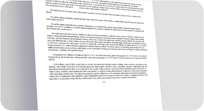 2/24/2018 S-1 Table of Contents underwriters are concerned that there may be downward pressure on the price of the Class A common stock in the open market after pricing that could adversely affect investors who purchase in the offering. Stabilizing transactions consist of various bids for or purchases of common stock made by the underwriters in the open market prior to the completion of the offering. The underwriters may also impose a penalty bid. This occurs when a particular underwriter repays to the underwriters a portion of the underwriting discount received by it because the representatives have repurchased shares sold by or for the account of such underwriter in stabilizing or short covering transactions. Purchases to cover a short position and stabilizing transactions, as well as other purchases by the underwriters for their own accounts, may have the effect of preventing or retarding a decline in the market price of our stock, and together with the imposition of the penalty bid, may stabilize, maintain, or otherwise affect the market price of the common stock. As a result, the price of our Class A common stock may be higher than the price that otherwise might exist in the open market. The underwriters are not required to engage in these activities and may end any of these activities at any time. These transactions may be effected on , in the overthecounter market or otherwise The underwriters do not expect sales to discretionary accounts to exceed five percent of the total number of shares of Class A common stock offered. We and the selling stockholders estimate that their share of the total expenses of the offering, excluding underwriting discounts and commissions, will be approximately $ . We and the selling stockholders have agreed to indemnify the several underwriters against certain liabilities, including liabilities under the Securities Act of 1933. In addition, we and the selling stockholders have agreed to reimburse the underwriters for certain expenses in connection with this offering in the amount up to $ . The underwriters and their respective affiliates are full service financial institutions engaged in various activities, which may include sales and trading, commercial and investment banking, advisory, investment management, investment research, principal investment, hedging, market making, brokerage, and other financial and nonfinancial activities and services. Certain of the underwriters and their respective affiliates have provided, and may in the future provide, a variety of these services to the issuer and to persons and entities with relationships with the issuer, for which they received or will receive customary fees and expenses. In 2014, we entered into a revolving credit agreement with affiliates of Goldman Sachs & Co. LLC and J.P. Morgan Securities LLC, under which these underwriters and their respective affiliates have been, and may be in the future, paid customary fees. For additional information on our revolving credit facility, see the section titled “Management’s Discussion and Analysis of Financial Condition and Results of Operations—Liquidity and Capital Resources.” In September 2011, affiliates of Goldman Sachs & Co. LLC, one of the underwriters, purchased an aggregate of 2,755,799 shares of our Series B Preferred Stock, all of which shares will automatically convert into an aggregate of 2,755,799 shares of Class B common stock in connection with this offering. In the ordinary course of their various business activities, the underwriters and their respective affiliates, officers, directors, and employees may purchase, sell, or hold a broad array of investments and actively trade securities, derivatives, loans, commodities, currencies, credit default swaps, and other financial instruments for their own account and for the accounts of their customers, and such investment and trading activities may involve or relate to assets, securities, and/or instruments of the issuer (directly, as collateral securing other obligations or otherwise), and/or persons and entities with relationships with the issuer. The underwriters and their respective affiliates may also communicate independent investment recommendations, market color or trading ideas and/or publish or express independent research views in respect of such assets, securities, or instruments and may at any time hold, or recommend to clients that they should acquire, long, and/or short positions in such assets, securities and instruments. 174 https://www.sec.gov/Archives/edgar/data/1467623/000119312518055809/d451946ds1.htm 182/235