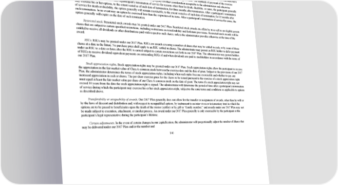 2/24/2018 S-1 Table of Contents cancellation of any or all outstanding awards with the consent of a participant. The administrator may also buy out an award previously granted for cash, shares, or other consideration as the administrator and the participant may agree. Options. Stock options may be granted under our 2017 Plan. The exercise price per share of all options must equal at least the fair market value per share of our Class A common stock on the date of grant, unless otherwise expressly determined in writing by the administrator on the grant date. The term of an option may not exceed ten years. An incentive stock option granted to a participant who owns more than 10% of the total combined voting power of all classes of our stock on the date of grant, or any parent or subsidiary corporations, may not have a term in excess of five years and must have an exercise price of at least 110% of the fair market value per share of our common stock on the grant date. The methods of payment of the exercise price of an option include cash (by check) or shares or certain other property or other consideration acceptable to the administrator and otherwise permitted under our 2017 Plan. After a participant’s termination of service for reasons other than for death, disability, or cause, the participant generally may exercise his or her options, to the extent vested as of such date of termination, for three months after termination. After a participant’s termination of service for death or disability, the option generally will remain exercisable, to the extent vested as of such date of termination, for 12 months after such termination. In no event may an option be exercised later than the expiration of its term. After a participant’s termination of service for cause, the option generally will expire on the date of such termination. Restricted stock. Restricted stock awards may be granted under our 2017 Plan. Restricted stock awards are offers by us to sell to an eligible person shares that are subject to certain specified restrictions, including restrictions on transferability and forfeiture provisions. Restricted stock awards will be entitled to receive all dividends or other distributions paid with respect to such shares, unless the administrator provides otherwise at the time of the award. RSUs. RSUs may be granted under our 2017 Plan. RSUs are awards covering a number of shares that may be settled in cash, or by issue of those shares at a date in the future. No purchase price shall apply to an RSU settled in shares. The administrator may permit an RSU holder to defer payment under an RSU to a date or dates after the RSU is earned subject to certain restrictions set forth in our 2017 Plan. The administrator may permit holders of RSUs to receive dividend equivalent payments on outstanding RSUs if and when dividends are paid to stockholders in accordance with the terms of our 2017 Plan. Stock appreciation rights. Stock appreciation rights may be granted under our 2017 Plan. Stock appreciation rights allow the participant to receive the appreciation in the fair market value of Class A common stock between the exercise date and the date of grant. Subject to the provisions of our 2017 Plan, the administrator determines the terms of stock appreciation rights, including when such rights become exercisable and whether to pay any increased appreciation in cash or shares. The per share exercise price for the shares to be issued pursuant to the exercise of a stock appreciation right must equal at least the fair market value per share of our Class A common stock on the date of grant. The term of a stock appreciation right may not exceed 10 years from the date the stock appreciation right is signed. The administrator will determine the period of time after a participant’s termination of service during which the participant may exercise his or her stock appreciation right, subject to the same terms and conditions as applicable to options as described above. Transferability or assignability of awards. Our 2017 Plan generally does not allow for the transfer or assignment of awards, other than by will or by the laws of descent and distribution and, with respect to nonqualified options, by instrument to an inter vivos or testamentary trust in which the options are to be passed to beneficiaries upon the death of the trustor (settlor) or by gift to “family member,” and awards under our 2017 Plan may not be made subject to execution, attachment, or similar process. An award under our 2017 Plan generally is only exercisable by the participant or the participant’s legal representative during the participant’s lifetime. Certain adjustments. In the event of certain changes in our capitalization, the administrator will proportionally adjust the number of shares that may be delivered under our 2017 Plan and/or the number and 146 https://www.sec.gov/Archives/edgar/data/1467623/000119312518055809/d451946ds1.htm 154/235