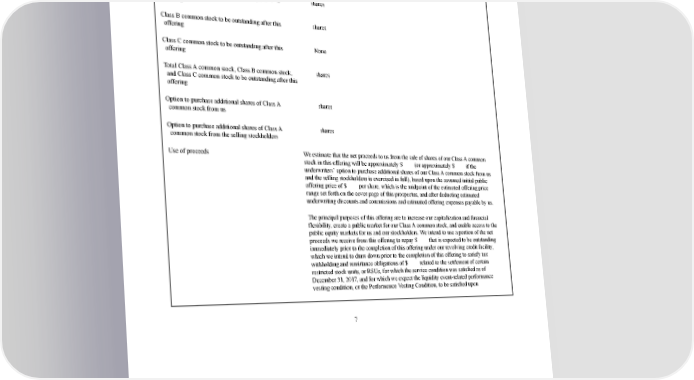 2/24/2018 S-1 Table of Contents THE OFFERING Class A common stock offered by us shares Class A common stock offered by the selling shares stockholders Class A common stock to be outstanding after this shares offering Class B common stock to be outstanding after this shares offering Class C common stock to be outstanding after this None offering Total Class A common stock, Class B common stock, shares and Class C common stock to be outstanding after this offering Option to purchase additional shares of Class A shares common stock from us Option to purchase additional shares of Class A shares common stock from the selling stockholders Use of proceeds We estimate that the net proceeds to us from the sale of shares of our Class A common stock in this offering will be approximately $ (or approximately $ if the underwriters’ option to purchase additional shares of our Class A common stock from us and the selling stockholders is exercised in full), based upon the assumed initial public offering price of $ per share, which is the midpoint of the estimated offering price range set forth on the cover page of this prospectus, and after deducting estimated underwriting discounts and commissions and estimated offering expenses payable by us. The principal purposes of this offering are to increase our capitalization and financial flexibility, create a public market for our Class A common stock, and enable access to the public equity markets for us and our stockholders. We intend to use a portion of the net proceeds we receive from this offering to repay $ that is expected to be outstanding immediately prior to the completion of this offering under our revolving credit facility, which we intend to draw down prior to the completion of this offering to satisfy tax withholding and remittance obligations of $ related to the settlement of certain restricted stock units, or RSUs, for which the service condition was satisfied as of December 31, 2017, and for which we expect the liquidity eventÂrelated performance vesting condition, or the Performance Vesting Condition, to be satisfied upon 7 https://www.sec.gov/Archives/edgar/data/1467623/000119312518055809/d451946ds1.htm 14/235