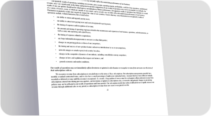 2/24/2018 S-1 Table of Contents efficient customer support that meets our customers’ needs globally at scale. Paying users receive additional customer support features and the number of our paying users has grown significantly, which will put additional pressure on our support organization. For example, the number of paying users has grown from 6.5 million as of December 31, 2015, to 11 million as of December 31, 2017. If we are unable to provide efficient customer support globally at scale, our ability to grow our operations may be harmed and we may need to hire additional support personnel, which could harm our results of operations. Our new user signups are highly dependent on our business reputation and on positive recommendations from our existing users. Any failure to maintain highquality customer support, or a market perception that we do not maintain highquality customer support, could harm our reputation, business, results of operations, and financial condition. Our quarterly results may fluctuate significantly and may not fully reflect the underlying performance of our business. Our quarterly results of operations, including our revenue, gross margin, operating margin, profitability, cash flow from operations, and deferred revenue, may vary significantly in the future and periodtoperiod comparisons of our results of operations may not be meaningful. Accordingly, the results of any one quarter should not be relied upon as an indication of future performance. Our quarterly results of operations may fluctuate as a result of a variety of factors, many of which are outside of our control, and as a result, may not fully reflect the underlying performance of our business. Fluctuation in quarterly results may negatively impact the value of our securities. Factors that may cause fluctuations in our quarterly results of operations include, without limitation, those listed below: • our ability to retain and upgrade paying users; • our ability to attract new paying users and convert registered to paying users; • the timing of expenses and recognition of revenue; • the amount and timing of operating expenses related to the maintenance and expansion of our business, operations, and infrastructure, as well as entry into operating and capital leases; • the timing of expenses related to acquisitions; • any large indemnification payments to our users or other third parties; • changes in our pricing policies or those of our competitors; • the timing and success of new product feature and service introductions by us or our competitors; • network outages or actual or perceived security breaches; • changes in the competitive dynamics of our industry, including consolidation among competitors; • changes in laws and regulations that impact our business; and • general economic and market conditions. Our results of operations may not immediately reflect downturns or upturns in sales because we recognize revenue from our users over the term of their subscriptions with us. We recognize revenue from subscriptions to our platform over the terms of these subscriptions. Our subscription arrangements generally have monthly or annual contractual terms, and we also have a small percentage of multiyear contractual terms. Amounts that have been billed are initially recorded as deferred revenue until the revenue is recognized. As a result, a large portion of our revenue for each quarter reflects deferred revenue from subscriptions entered into during previous quarters, and downturns or upturns in subscription sales, or renewals and potential changes in our pricing policies may not be reflected in our results of operations until later periods. Our subscription model also makes it difficult for us to rapidly increase our revenue through additional sales in any period, as subscription revenue from new users is recognized over the 22 https://www.sec.gov/Archives/edgar/data/1467623/000119312518055809/d451946ds1.htm 29/235