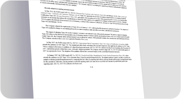 2/24/2018 S-1 Table of Contents In February 2016, the FASB issued ASU No. 201602, Leases (Topic 842). Most prominent among the changes in the standard is the recognition of right of use assets and lease liabilities by lessees for those leases classified as operating leases under current GAAP. Under the standard, disclosures are required to meet the objective of enabling users of financial statements to assess the amount, timing, and uncertainty of cash flows arising from leases. The Company will be required to recognize and measure leases existing at, or entered into after, the beginning of the earliest comparative period presented using a modified retrospective approach, with certain practical expedients available. The new standard is effective for fiscal years beginning after December 15, 2018. Early adoption by public entities is permitted. The Company is in the initial stage of its assessment of the new standard and is currently evaluating the timing of adoption, the quantitative impact of adoption, and the related disclosure requirements. The Company anticipates the adoption of this standard will result in a substantial increase in its noncurrent assets and liabilities recorded on the consolidated balance sheets. The adoption of the standard is not expected to have a material impact on the consolidated statement of operations. While the Company is assessing all potential impacts of the adoption of the standard, it currently expects the most significant impact to be the capitalization of righttouse assets and lease liabilities for its office space and datacenter operating leases. The Company expects its accounting for capital leases related to infrastructure equipment to remain substantially unchanged under the new standard. Recently adopted accounting pronouncements In May 2014, the FASB issued ASU No. 201409, Revenue from Contracts with Customers (Topic 606) and Subtopic 34040, Other Assets and Deferred Costs—Contracts with Customers (Subtopic 34040). Topic 606 supersedes the revenue recognition requirements in Accounting Standards Codification Topic 605, Revenue Recognition (Topic 605), and requires the recognition of revenue when promised goods or services are transferred to customers in an amount that reflects the considerations to which the entity expects to be entitled to in exchange for those goods or services. Subtopic 34040 requires the deferral of incremental costs of obtaining a contract with a customer. Collectively, reference to Topic 606 used herein refers to both Topic 606 and Subtopic 34040. The Company adopted the requirements of Topic 606 as of January 1, 2017, utilizing the full retrospective method of transition. The adoption of Topic 606 resulted in changes to accounting policies for revenue recognition, trade and other receivables, and deferred commissions. The impact of adopting Topic 606 on the Company’s revenue is not material to any of the periods presented. The primary impact of adopting Topic 606 relates to the deferral of incremental costs of obtaining customer contracts and the amortization of those costs over a longer period of benefit. Under Topic 606, the Company defers all incremental costs to obtain the contract, which primarily include sales commissions and related payroll taxes. The Company amortizes these costs over a period of benefit of five years. In May 2017, the FASB issued ASU No. 201709, CompensationStock Compensation (Topic 718): Scope of Modification Accounting, which amends the guidance in ASC Topic 718. The standard provides clarity and reduces the cost and complexity when applying the guidance in ASC Topic 718 to a change to the terms or conditions of a sharebased payment award. ASU No. 201709 is effective for fiscal years beginning after December 15, 2017, and interim periods within those years, with early adoption permitted. The Company elected to adopt ASU No. 201709 in the fourth quarter of 2017 on a prospective basis. The adoption of the guidance did not have a material impact on the consolidated financial statements. In January 2017, the FASB issued ASU No. 201704, Goodwill and Other, Simplifying the Test for Goodwill Impairment (Topic 350), which amends the guidance in ASC Topic 350 to eliminate Step 2 from the goodwill impairment test. The updated guidance requires an entity to perform its annual or interim goodwill impairment test by comparing the fair value of a reporting unit with its carrying amount and recognize an impairment charge for the amount by which the carrying amount exceeds the reporting unit’s fair value not to exceed the total amount of goodwill allocated to that reporting unit. ASU No. 201704 is effective for fiscal years F18 https://www.sec.gov/Archives/edgar/data/1467623/000119312518055809/d451946ds1.htm 208/235