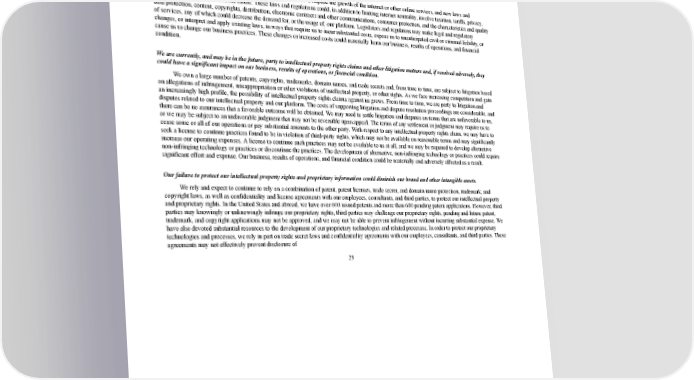 2/24/2018 S-1 Table of Contents challenge thereto remains uncertain. The rules were designed to ensure that all online content is treated the same by internet service providers and other companies that provide broadband services. Should the repeal of net neutrality rules take effect, we could incur greater operating expenses, which could harm our results of operations. As the internet continues to experience growth in the number of users, frequency of use, and amount of data transmitted, the internet infrastructure that we and our users rely on may be unable to support the demands placed upon it. The failure of the internet infrastructure that we or our users rely on, even for a short period of time, could undermine our operations and harm our results of operations. In addition, there are various laws and regulations that could impede the growth of the internet or other online services, and new laws and regulations may be adopted in the future. These laws and regulations could, in addition to limiting internet neutrality, involve taxation, tariffs, privacy, data protection, content, copyrights, distribution, electronic contracts and other communications, consumer protection, and the characteristics and quality of services, any of which could decrease the demand for, or the usage of, our platform. Legislators and regulators may make legal and regulatory changes, or interpret and apply existing laws, in ways that require us to incur substantial costs, expose us to unanticipated civil or criminal liability, or cause us to change our business practices. These changes or increased costs could materially harm our business, results of operations, and financial condition. We are currently, and may be in the future, party to intellectual property rights claims and other litigation matters and, if resolved adversely, they could have a significant impact on our business, results of operations, or financial condition. We own a large number of patents, copyrights, trademarks, domain names, and trade secrets and, from time to time, are subject to litigation based on allegations of infringement, misappropriation or other violations of intellectual property, or other rights. As we face increasing competition and gain an increasingly high profile, the possibility of intellectual property rights claims against us grows. From time to time, we are party to litigation and disputes related to our intellectual property and our platform. The costs of supporting litigation and dispute resolution proceedings are considerable, and there can be no assurances that a favorable outcome will be obtained. We may need to settle litigation and disputes on terms that are unfavorable to us, or we may be subject to an unfavorable judgment that may not be reversible upon appeal. The terms of any settlement or judgment may require us to cease some or all of our operations or pay substantial amounts to the other party. With respect to any intellectual property rights claim, we may have to seek a license to continue practices found to be in violation of thirdparty rights, which may not be available on reasonable terms and may significantly increase our operating expenses. A license to continue such practices may not be available to us at all, and we may be required to develop alternative noninfringing technology or practices or discontinue the practices. The development of alternative, noninfringing technology or practices could require significant effort and expense. Our business, results of operations, and financial condition could be materially and adversely affected as a result. Our failure to protect our intellectual property rights and proprietary information could diminish our brand and other intangible assets. We rely and expect to continue to rely on a combination of patent, patent licenses, trade secret, and domain name protection, trademark, and copyright laws, as well as confidentiality and license agreements with our employees, consultants, and third parties, to protect our intellectual property and proprietary rights. In the United States and abroad, we have over 600 issued patents and more than 600 pending patent applications. However, third parties may knowingly or unknowingly infringe our proprietary rights, third parties may challenge our proprietary rights, pending and future patent, trademark, and copyright applications may not be approved, and we may not be able to prevent infringement without incurring substantial expense. We have also devoted substantial resources to the development of our proprietary technologies and related processes. In order to protect our proprietary technologies and processes, we rely in part on trade secret laws and confidentiality agreements with our employees, consultants, and third parties. These agreements may not effectively prevent disclosure of 29 https://www.sec.gov/Archives/edgar/data/1467623/000119312518055809/d451946ds1.htm 36/235