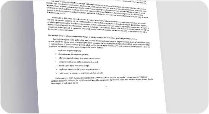 2/24/2018 S-1 Table of Contents European legislators have adopted a General Data Protection Regulation, or GDPR, that will, when effective in May 2018, supersede current European Union, or EU, data protection legislation, impose more stringent EU data protection requirements, and provide for greater penalties for noncompliance. Further, following a referendum in June 2016 in which voters in the United Kingdom approved an exit from the EU, the United Kingdom government has initiated a process to leave the EU, or Brexit. Brexit has created uncertainty with regard to the regulation of data protection in the United Kingdom. In particular, it is unclear whether the United Kingdom will enact data protection laws or regulations designed to be consistent with the pending EU General Data Protection Regulation and how data transfers to and from the United Kingdom will be regulated. Additionally, although we have self certified under the U.S.EU and U.S.Swiss Privacy Shield Frameworks with regard to our transfer of certain personal data from the EU and Switzerland to the United States, some regulatory uncertainty remains surrounding the future of data transfers from the EU and Switzerland to the United States, and we are closely monitoring regulatory developments in this area. Any failure or perceived failure by us to comply with our privacy policies, our privacyrelated obligations to users or other third parties, or any of our other legal obligations relating to privacy, data protection, or information security may result in governmental investigations or enforcement actions, litigation, claims, or public statements against us by consumer advocacy groups or others and could result in significant liability or cause our users to lose trust in us, which could have an adverse effect on our reputation and business. Furthermore, the costs of compliance with, and other burdens imposed by, the laws, regulations, and policies that are applicable to the businesses of our users may limit the adoption and use of, and reduce the overall demand for, our services. Additionally, if third parties we work with, such as vendors or developers, violate applicable laws or regulations or our policies, such violations may also put our users’ content at risk and could in turn have an adverse effect on our business. Any significant change to applicable laws, regulations, or industry practices regarding the collection, use, retention, security, or disclosure of our users’ content, or regarding the manner in which the express or implied consent of users for the collection, use, retention, or disclosure of such content is obtained, could increase our costs and require us to modify our services and features, possibly in a material manner, which we may be unable to complete, and may limit our ability to store and process user data or develop new services and features. Our business could be adversely impacted by changes in internet access for our users or laws specifically governing the internet. Our platform depends on the quality of our users’ access to the internet. Certain features of our platform require significant bandwidth and fidelity to work effectively. Internet access is frequently provided by companies that have significant market power that could take actions that degrade, disrupt or increase the cost of user access to our platform, which would negatively impact our business. We could incur greater operating expenses and our user acquisition and retention could be negatively impacted if network operators: • implement usagebased pricing; • discount pricing for competitive products; • otherwise materially change their pricing rates or schemes; • charge us to deliver our traffic at certain levels or at all; • throttle traffic based on its source or type; • implement bandwidth caps or other usage restrictions; or • otherwise try to monetize or control access to their networks. On December 14, 2017, the Federal Communications Commission voted to repeal the “net neutrality” rules and return to a “lighttouch” regulatory framework. However, the repeal has not yet taken effect and a number of parties have already stated their intent to appeal this order; thus, the future impact of such repeal and any 28 https://www.sec.gov/Archives/edgar/data/1467623/000119312518055809/d451946ds1.htm 35/235