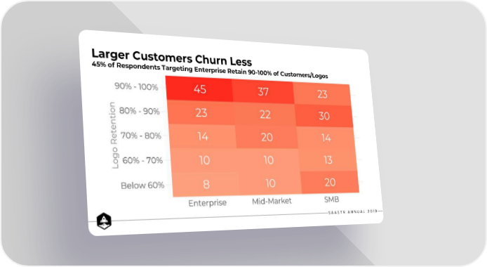 Larger Customers Churn Less 45% of Respondents Targeting Enterprise Retain 90-100% of Customers/Logos