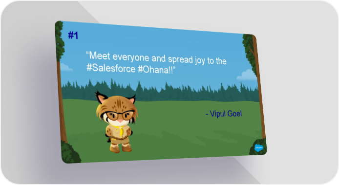 #1 “Meet everyone and spread joy to the #Salesforce #Ohana!!” - Vipul Goel