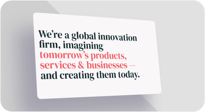 We’re a global innovation firm, imagining tomorrow’s products, services & businesses — and creating them today.