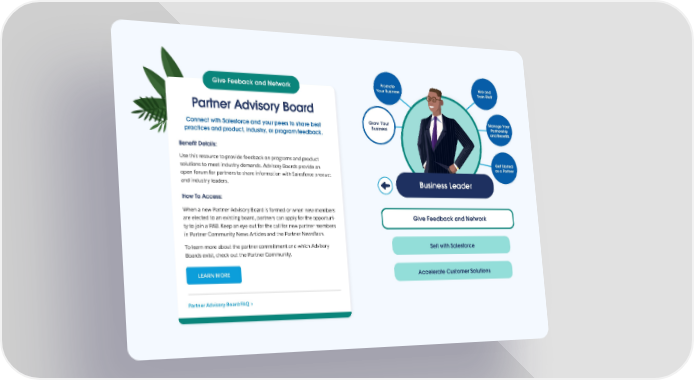 Give Feeback and Network Promote Hire and Your Business Train Staff Partner Advisory Board Grow Your Manage Your Connect with Salesforce and your peers to share best Business Partnership practices and product, industry, or program feedback. and Benefits Benefit Details: Use this resource to provide feedback on programs and product Get Started solutions to meet industry demands. Advisory Boards provide an as a Partner open forum for partners to share information with Salesforce product and industry leaders. Business Leader How To Access: When a new Partner Advisory Board is formed or when new members are elected to an existing board, partners can apply for the opportuni- Give Feedback and Network ty to join a PAB. Keep an eye out for the call for new partner members i artner Community News Articles and the Partner Newsflash. n P To learn more about the partner commitment and which Advisory Sell with Salesforce Boards exist, check out the Partner Community. LEARN MORE Accelerate Customer Solutions Partner Advisory Board FAQ >