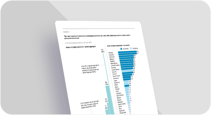 Exhibit 2 The vast majority of payments in emerging economies use cash, while digital payments are widely used in advanced economies % of total transactions by volume, 2014 Share of digital payments—global aggregate Share of digital payments—by country 50– Advanced Emerging 100% Norway 78 Australia 77 Denmark 62 Belgium 61 Sweden 57 Only 2% of global population Netherlands 57 lives in countries where United Kingdom 55 majority of transactions are Canada 53 made digitally (>50%) United States 49 Estonia 47 France 47 South Korea 40 Germany 33 25– Japan 32 50% Argentina 22 Brazil 20 Spain 20 Poland 17 Chile 15 Hungary 14 South Africa 11 3 of 4 people live in countries 15– Mexico 11 with only marginal usage of 25% Russia 11 digital payments (<5%) 5– Malaysia 10 15% Saudi Arabia 6 China 4 Peru 4 0–5% Romania 3 Philippines 2 Indonesia 1 0 20 40 60 80 100 India <1 Nigeria <1 Global population Pakistan <1 % of total Ethiopia <1 SOURCE: McKinsey Global Payments Map; World Bank; McKinsey Global Institute analysis DUPLICATE from ES 20 McKinsey Global Institute 1. The limited scope of finance in emerging economies today