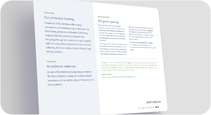 THEIR STORY THEIR SOLUTION Out-of-the-box thinking The grand opening Created in 2010, Birchbox offers savvy To get the brand in front of potential unboxing to the product samples themselves, customers, the team created a series of five showing women applying lipgloss, highlighter consumers a personalised way to discover the captivating videos designed specifically for and eyeliner. The women featured are all best beauty products and brands. Delivering Instagram that targeted its key demographic. Birchbox staff members, a "real girl" strategy Each video began with the ritual unboxing, reflected in all of the brand's editorial and original editorial content and hassle-free highlighting a favourite part of the Birchbox social content. shopping through its e-commerce site, coupled experience. The video campaign generated a sizeable with the undeniable excitement of the monthly Featuring clean-cut creative in bright colours, 12-point lift in brand awareness and a the wordless videos were presented from a 26-point lift in advert recall versus the control unboxing, Birchbox makes modern beauty easy, "let me show you" point of view, mimicking group. efficient and fun. the visual style of popular beauty blog posts. Later videos in the series went beyond the THEIR GOAL "Instagram has been an incredibly effective engagement-driver among our current customers, so An audience makeover we wanted to leverage the platform in a creative way to reach new audiences as well. This video series was fun, friendly and cheerful – authentically showcasing what Birchbox is all about – and As one of the fastest-growing beauty retailers, we saw a significant lift in brand awareness as a result." Birchbox looked to Instagram to boost brand Rachel Jo Silver Director, Social Marketing & Content Strategy, Birchbox awareness and spread its story of discovery to a new audience. CROSS-BORDER BUSINESS HANDBOOK