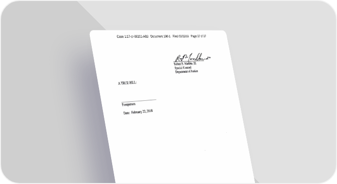 Case 1:17-cr-00201-ABJ Document 190-1 Filed 02/22/18 Page 37 of 37 Robert S. M Her, III Special Counsel Department of Justice A TRUE BILL: Foreperson Date: February 22, 2018 37