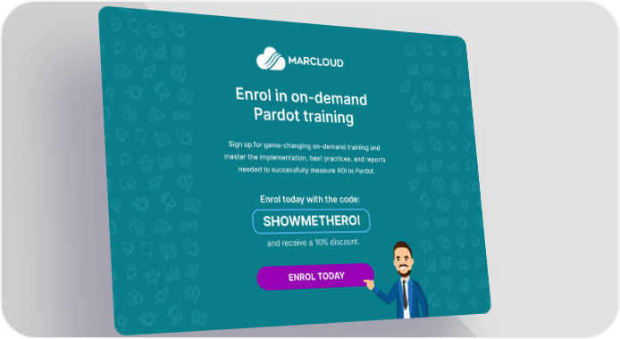 Enrol in on-demand Pardot training Sign up for game-changing on-demand training and master the implementation, best practices, and reports needed to successfully measure ROI in Pardot. Enrol today with the code: SHOWMETHEROI and receive a 10% discount. ENROL TODAY 25 marcloudconsulting.com