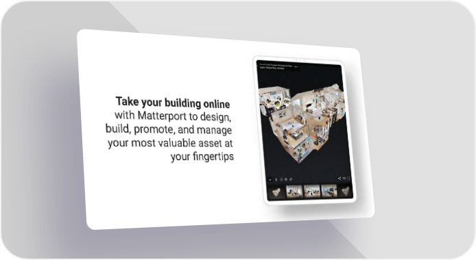 8 Take your building online with Matterport to design, build, promote, and manage your most valuable asset at your fingertips 8