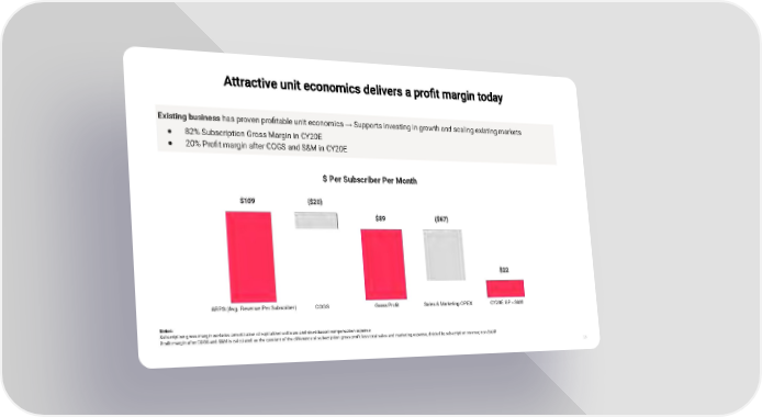 26 Existing business has proven profitable unit economics Supports investing in growth and scaling existing markets 82% Subscription Gross Margin in CY20E 20% Profit margin after COGS and S&M in CY20E Notes: Subscription gross margin excludes amortization of capitalized software and stock-based compensation expense Profit margin after COGS and S&M is calculated as the quotient of the difference of subscription gross profit less total sales and marketing expense, divided by subscription revenue; non-GAAP $ Per Subscriber Per Month