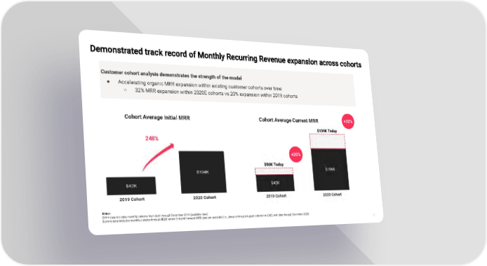 27 Customer cohort analysis demonstrates the strength of the model Accelerating organic MRR expansion within existing customer cohorts over time: 32% MRR expansion within 2020E cohorts vs 20% expansion within 2019 cohorts Notes: CY19 data includes monthly cohorts from April through December 2019 (available data) Current data includes monthly cohorts through 4Q20 where 3-month forward MRR data are available (I.e., January through August cohorts for 2020, with data through December, 2020) Cohort Average Initial MRR Cohort Average Current MRR +20% +32% 248%
