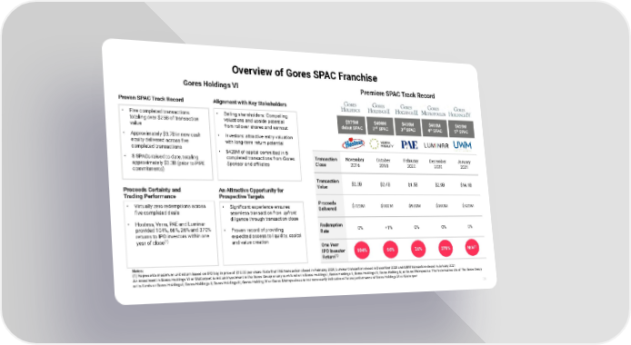 36 Overview of Gores SPAC Franchise Selling shareholders: Compelling valuations and upside potential from rollover shares and earnout Investors: attractive entry valuation with long-term return potential $420M of capital committed in 5 completed transactions from Gores Sponsor and affiliates Significant experience ensures seamless transaction from upfront diligence through transaction close Proven record of providing expedited access to liquidity, capital and value creation Five completed transactions totaling over $25B of transaction value Approximately $3.7B in new cash equity delivered across five completed transactions 8 SPACs raised to date, totaling approximately $3.3B (prior to PIPE commitments) $375M debut SPAC $400M 2 nd SPAC $400M 3 rd SPAC $400M 4 th SPAC $425M 5 th SPAC Transaction Close November 2016 October 2018 February 2020 December 2020 January 2021 Transaction Value $2.3B $2.4B $1.5B $2.9B $16.1B Proceeds Delivered $725M $800M $620M $590M $925M Redemption Rate 0% <1% 0% 0% 0% One Year IPO Investor Return (1) Gores Holdings VI 104% 66% 26% Premiere SPAC Track Record 370% Proven SPAC Track Record Alignment with Key Stakeholders Virtually zero redemptions across five completed deals Hostess, Verra, PAE and Luminar provided 104%, 66%, 26% and 370% returns to IPO investors within one year of close (1) Proceeds Certainty and Trading Performance An Attractive Opportunity for Prospective Targets N/A (1) Notes: (1) Represents maximum unit return based on IPO buy-in price of $10.00 per share. Note that PAE transaction closed in February 2020, Luminar transaction closed in December 2020 and UWM transaction closed in January 2021 An investment in Gores Holdings VI or Matterport is not an investment in the Gores Group or any such fund or in Gores Holdings I, Gores Holdings II, Gores Holdings III, Gores Holding IV, or Gores Metropoulos. The historical results of The Gores Group or its funds or Gores Holdings I, Gores Holdings II, Gores Holdings III, Gores Holding IV or Gores Metropoulos are not necessarily indicative of future performance of Gores Holdings VI or Matterport