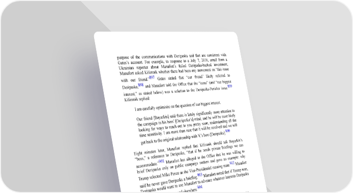 purpose of the communications with Deripaska and that are consistent with Gates’s account. For example, in response to a July 7, 2016, email from a Ukrainian reporter about Manafort’s failed Deripaska-backed investment, Manafort asked Kilimnik whether there had been any movement on “this issue 897 with our friend.” Gates stated that “our friend” likely referred to 898 Deripaska, and Manafort told the Office that the “issue” (and “our biggest 899 interest,” as stated below) was a solution to the Deripaska-Pericles issue. Kilimnik replied: I am carefully optimistic on the question of our biggest interest. Our friend [Boyarkin] said there is lately significantly more attention to the campaign in his boss’ [Deripaska’s] mind, and he will be most likely looking for ways to reach out to you pretty soon, understanding all the time sensitivity. I am more than sure that it will be resolved and we will 900 get back to the original relationship with V.’s boss [Deripaska]. Eight minutes later, Manafort replied that Kilimnik should tell Boyarkin’s “boss,” a reference to Deripaska, “that if he needs private briefings we can 901 accommodate.” Manafort has alleged to the Office that he was willing to brief Deripaska only on public campaign matters and gave an example: why 902 Trump selected Mike Pence as the Vice-Presidential running mate. Manafort 903 said he never gave Deripaska a briefing. Manafort noted that if Trump won, Deripaska would want to use Manafort to advance whatever interests Deripaska 904 had in the United States and elsewhere. iii. Paul Manafort’s Two Campaign-Period Meetings with Konstantin Kilimnik in the United States Manafort twice met with Kilimnik in person during the campaign period— once in May and again in August 2016. The first meeting took place on May 7, 905 2016, in New York City. In the days leading to the meeting, Kilimnik had been working to gather information about the political situation in Ukraine. That included information gleaned from a trip that former Party of Regions official Yuriy Boyko had recently taken to Moscow—a trip that likely included meetings