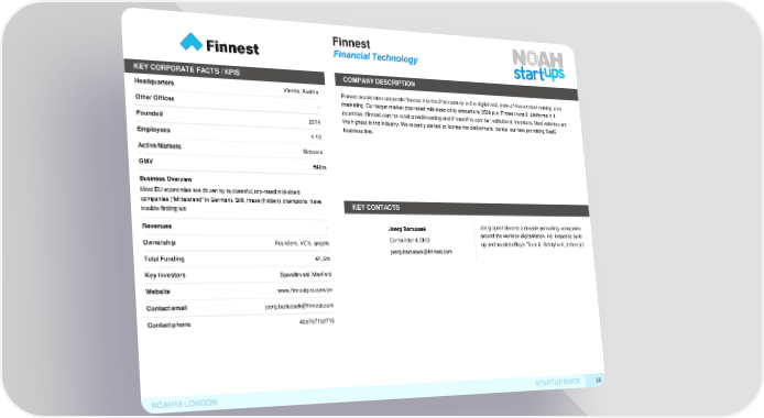 Finnest FinancialTechnology KEY CORPORATE FACTS /KPIS COMPANYDESCRIPTION Headquarters Vienna, AustriaFinnest accelerates corporate finance into the 21st century: e-2-e digitalized, state-of-the-art deal making plus OtherOffices - marketing. Our target market (top-rated mid-sized co's) amounts to 350b p.a. Finnest runs 2 platforms in 4 countries: Finnest.com for retail crowdinvesting and FinnestPro.com for institutional investors. Deal volumes are Founded 2014 the highest in the industry. We recently started to license the platforms to banks our new promising SaaS business line. Employees 4-10 ActiveMarkets Slovakia GMV €40m Business Overview Most EU economies are driven by successful, top-rated mid-sized companies (“Mittelstand” in German). Still, these (hidden) champions have KEYCONTACTS trouble finding we Revenues - Joerg Bartussek Joerg spent close to a decade consulting companies Co-founder & CEO around the world on digitalization. He helped to build Ownership Founders, VC's, angels up and headed eBay's 'Trust & Safety' unit, before joi TotalFunding [email protected] €1.5m KeyInvestors Speedinvest, Maxfield Website www.finnestpro.com/en Contactemail [email protected] Contactphone 436767132715 NOAH18LONDON STARTUPBOOK 56