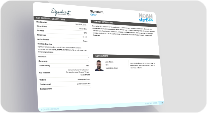 Signaturit Other KEY CORPORATE FACTS /KPIS COMPANYDESCRIPTION Headquarters Barcelona, Spain Founded in 2013 in Barcelona, Signaturit ́s vision is to help companies maximize the benefits obtained in the OtherOffices Amsterdam digitization of their business processes. Signaturit wants to be a global benchmark provider of electronic signatures and certification for all types of businesses, complying with the legislations in different countries and adapting to Founded 2014 changing requirements. Our HQ is in Barcelona, and we are represented in Madrid, Brussels, Hannover and Amsterdam. Employees 51-100 ActiveMarkets Europe Business Overview Signaturit help companies make all their communications between customers and staff, digital, automated and secure. We already have over 500 paying customers Revenues - KEYCONTACTS Ownership - Juan Zamora His professional career started as an analyst for TotalFunding CEO different Banks. Juan has more than 7 years of €4m [email protected] experience in the Fin. Bonsai Ventures, Banc Sabadell, KeyInvestors Faraday Ventures, Keyword VC and Nero Ventures Website www.signaturit.com Contactemail [email protected] Contactphone - NOAH18LONDON STARTUPBOOK 176