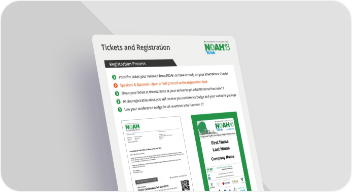 Tickets and Registration Registration Process Print the ticket your received from NOAH or have it ready on your smartphone / tablet Speakers & Sponsors: Upon arrival proceed to the registration desk Show your ticket at the entrance at your arrival to get admittance to Haoman 17 At the registration desk you will receive you conference badge and your welcome package Use your conference badge for all re-entries into Haoman 17 ORDER INFORMATION EVENT ORGANISER Ticket Code: N18-TLV-ET-UC1Q2 NOAH Advisors Ltd. Order Date: Jan 28, 2018 Louki Akrita, 1; Akritas Court, Agia Zoni Price: €0.00 3030 Limassol Attendee Category: NOAH Cyprus Your ticket for the NOAH Conference Tel Aviv 2018 Dear First Name Last Name, please find attached your ticket for "NOAH Conference Tel Aviv 2018" from 13 March 2018 until 14 March 2018, which you ordered on Jan 28, 2018. Kindly remember to print out your ticket and bring it with you to the event, to avoid any delays at the venue entrance. Please do not hesitate to contact the NOAH support at [email protected] in case of any problems with your ticket. Best regards, Your NOAH Team NOAH Advisors NOAH Conference Tel Aviv 2018 March 13, 2018 9:00 am until March 14, 2018 1:00 pm (site visits until 6:00pm) Haoman 17 Tel Aviv-Yafo, Israel N18-TLV-ET-UC1Q2 NOAH €0.00 First Name Last Name (not transferable) Ticket Colour Coding INVESTORS INTERNET / SERVICE PROVIDER / PRESS CORPORATES BANKER 9
