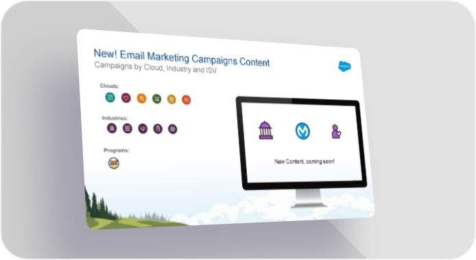New! Email Marketing Campaigns Content Campaigns by Cloud, Industry and ISV Clouds: Industries: Programs: New Content, coming soon!